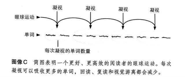 C图像表明,高效的阅读者每次凝视可以吸收更多的单词,回读、复读和视觉游离都会减少。